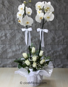 Sevginizi anlatacak kırmızı güllerden siyah kutu içerisine hazırlanmış  orkide'nin zerafeti ile hareketlendirilmiş aranjman ile sevdiğinizi çok mutlu edeceksiniz.