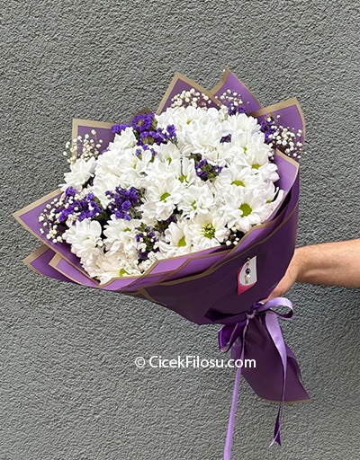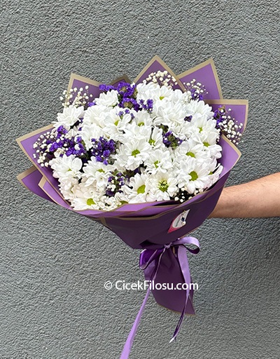 Onu düşünmek dünyanın en güzel hissi. Bu hissinizi ona papatya ve statislerden hazırlanan buket ile gösterin!